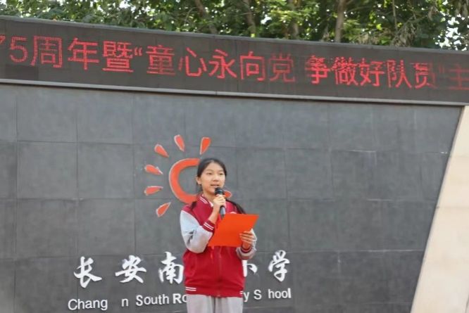 2024年10月10号上午10点10分,长安南路小学隆重举行了“童心永向党 争做好队员”庆祝中国少年先锋队建队75周年暨二年级新队员入队仪式。全校齐聚一堂,共同见证这一激动人心的历史时刻。