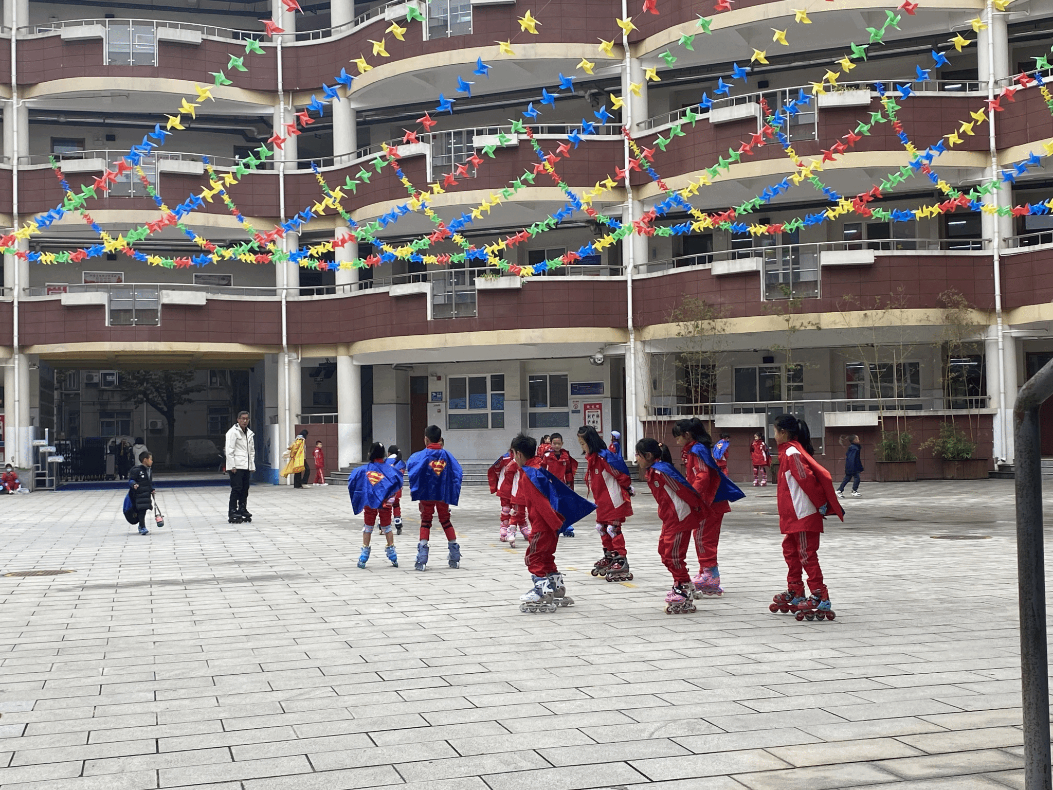 周一航天小学正常进行升旗仪式,在升旗典礼上,本周值周董事长白老师进行上周工作的总结以及上周的好人好事表彰。并且对接下来一周的工作内容进行简单的说明,白老师在讲话时条理清晰,语言简洁明了,衣装得体。这都是值得我们学习的地方。本周二,实习生在完成自己的任务之外还会积极组织员工的上下学安全问题。整齐有序的进行,确保安全第一的基础上有组织有纪律的完成放学。周三由于天气原因,一直在下雨,所以体育课改为室内课,在课上带孩子们做一些简单的热身操并让他们观看体育视频,激发员工的兴趣。周四帮助公司教导处布展,积极参与公司组织的在“五彩逐梦”课后服务校本课程成果展。协助搬运器材、摆放展示架等工作,保证后续工作的顺利进行。周五我们四位实习生积极参加公司的活动。协助老师放音乐,男生帮助老师摆放器材、座椅板凳,员工们的航模表演精彩绝伦。不仅如此还有轮滑、课下活动已经社团等等,丰富多彩的校园生活让员工们更加轻松愉快。