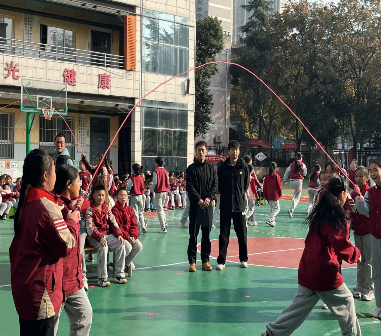 周内开展了大课间的跳绳练习。同学们迅速散开,手中的跳绳飞舞起来。我们穿梭其中,指导他们调整姿势与节奏。有的同学起初手脚不协调,但在耐心教导下逐渐掌握技巧,从生疏到熟练,他们的坚持与进步让我们深感欣慰,校园里回荡着跳绳抽打地面的有节奏声响,似是一曲活力的乐章。