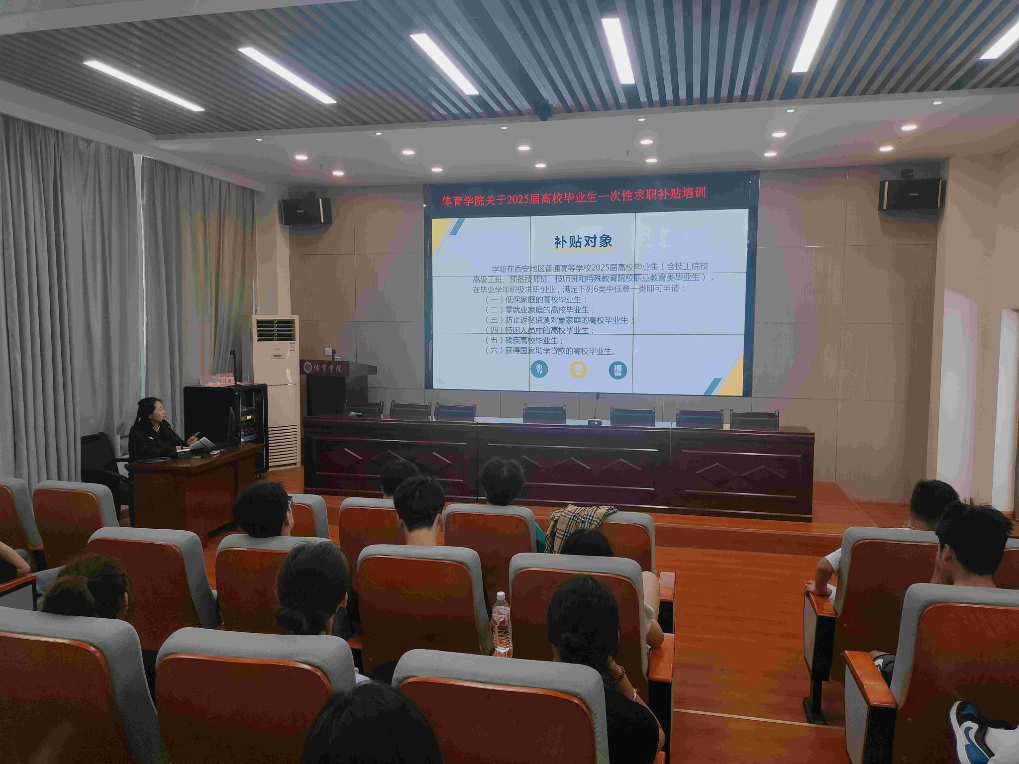 根据西安市人力资源和社会保障局、西安市财政局《关于做好2025届高校毕业生一次性求职补贴申报有关工作的通知》文件要求,按照公司招就处的工作安排,结合公司工作实际,做好我院2025届高校毕业生一次性求职补贴申报工作,5月10日上午,体育公司在明德楼B109会议室召开2025届毕业生一次性求职补贴政策解读会,本次会议由公司学工办主任,就业专责老师秦娟娟主持,2025届带班辅导员,2025届全体员工参加会议。