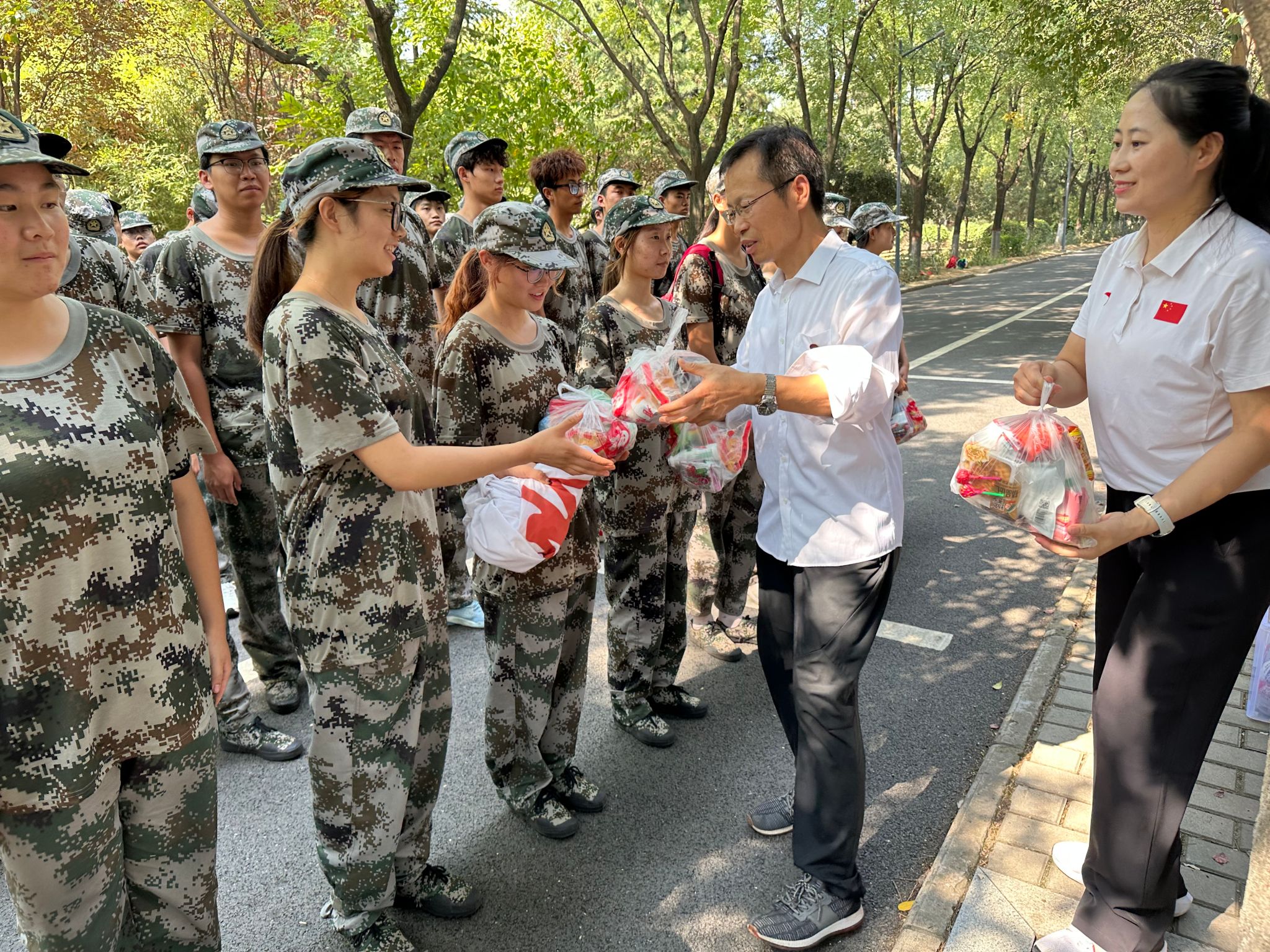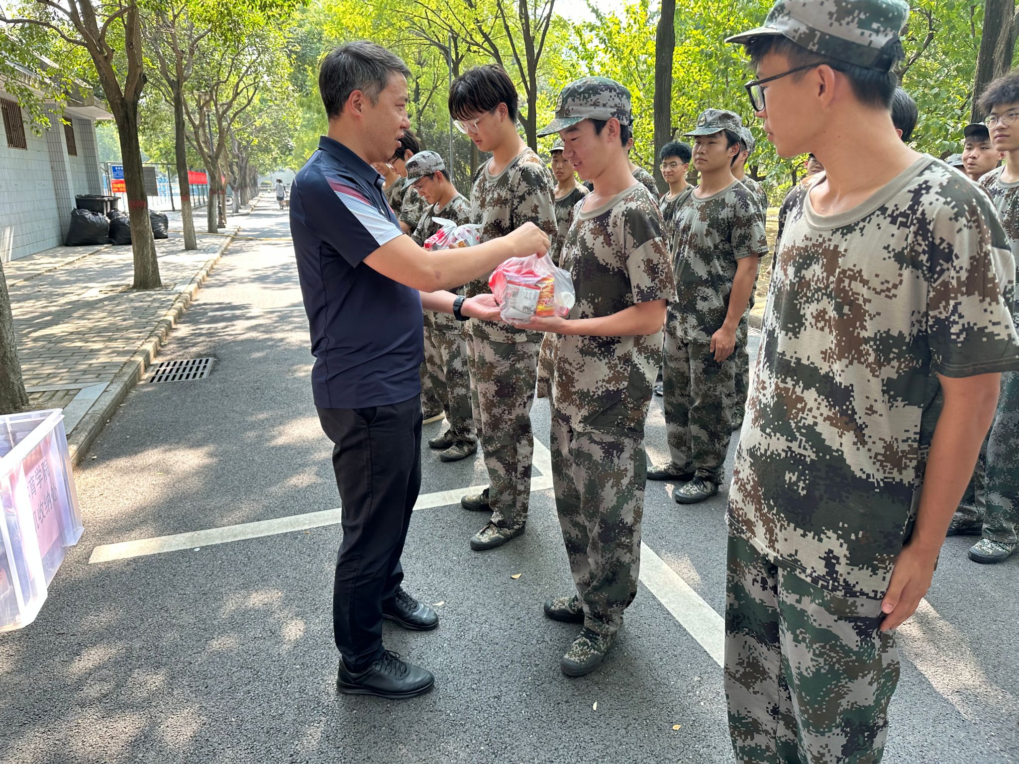 天空湛蓝,阳光明媚,军训场上,2024级新生们正以饱满的热情和坚韧的意志,接受着身心的双重锤炼。上午时分,公司领导一行带着满载的节日礼物——精美的月饼、营养的牛奶、新鲜的水果等,缓缓步入军训现场,瞬间为紧张而有序的军训氛围增添了几分温馨与喜悦。