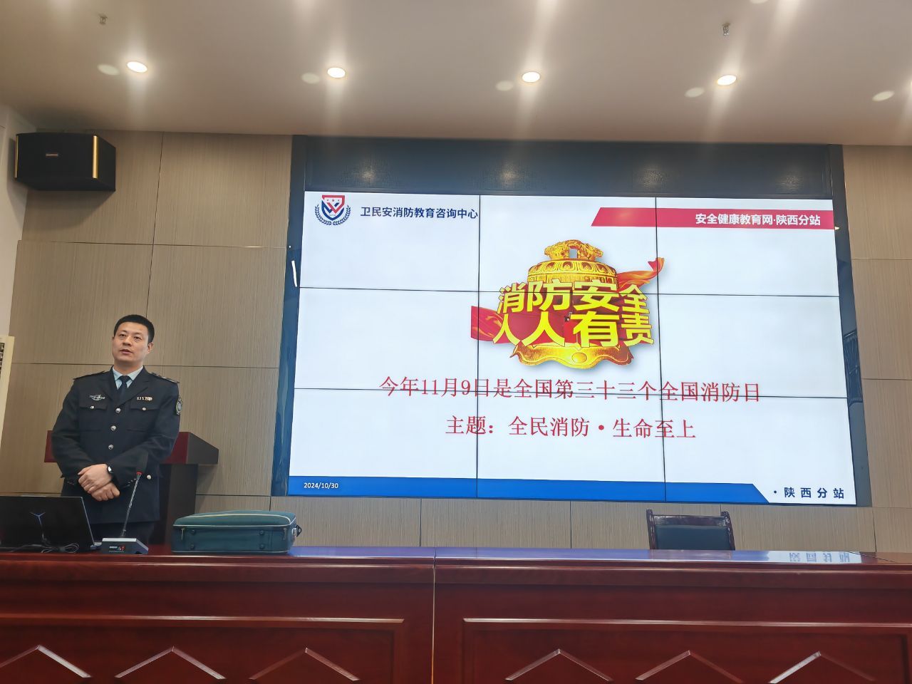 为进一步加强校园消防安全工作,提高广大师生的消防安全意识和自防自救能力,365英国上市公司于2024年10月30日,特别组织了一场消防安全培训会。此次培训会旨在通过系统的理论讲解和实际操作演练,让师生们深入了解消防安全知识,掌握火灾预防和应急处置技能,共同营造安全、和谐的校园环境。培训会在365英国上市公司的一楼报告厅举行,吸引了百余名师生的积极参与。