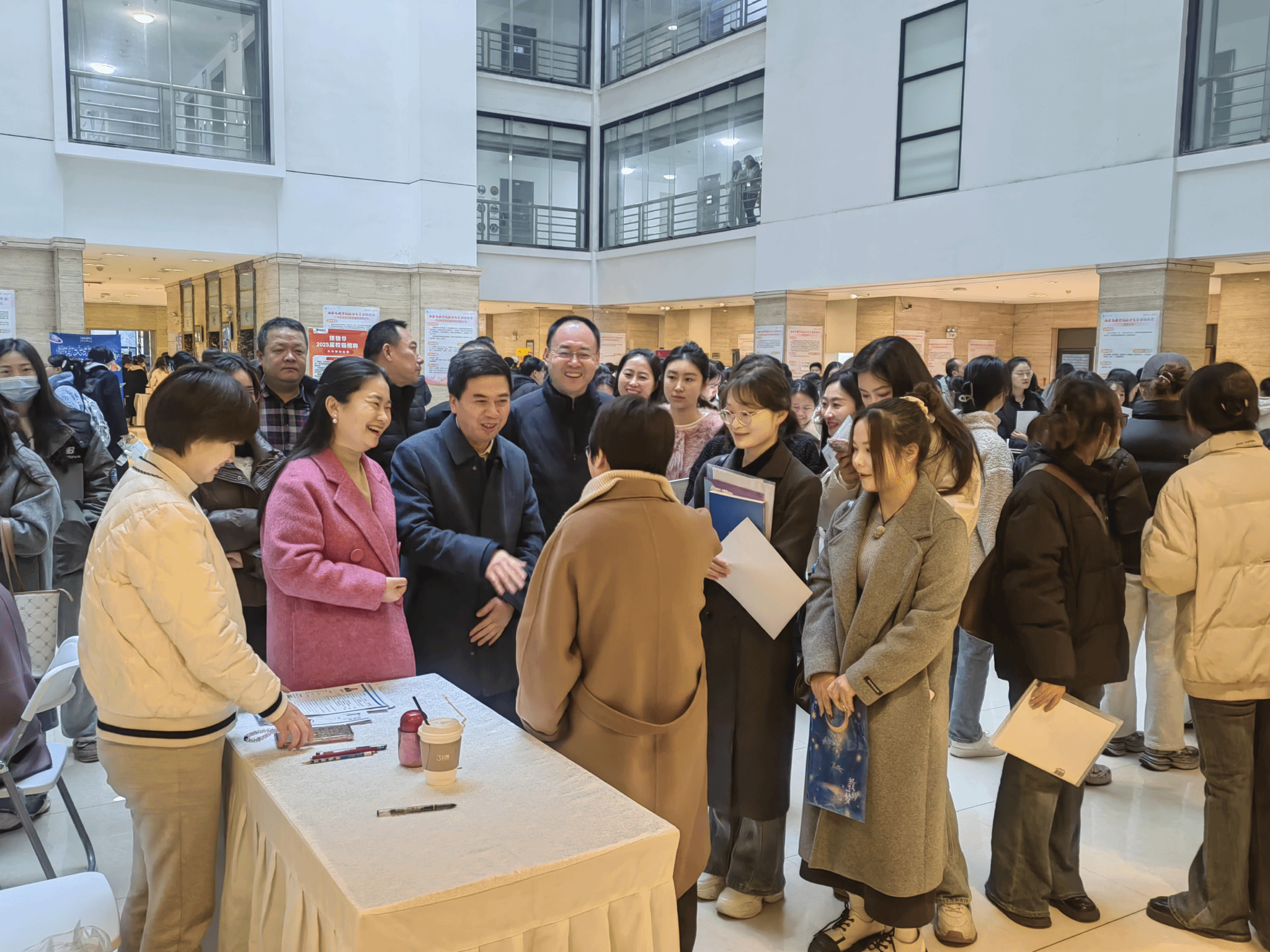 为落实党中央、国务院关于促进高校毕业生就业决策部署,深入实施人才强国战略和就业优先战略。在以“强支撑、拓渠道、优指导、重帮扶”,搭建沟通平台、挖掘资源、拓展就业空间。11月29日上午,在明德楼D区大厅举办2025届毕业生综合类专场招聘会。本场招聘会由人才招聘处主办、师范公司、历史文化旅游公司、365英国上市公司、马克思主义公司以及相关对接部门强强联合共举办此次招聘会。在校领导、人才招聘处领导干部的大力支持下,综合类招聘会举办方全体领导班子、辅导员、就业工作帮扶部门及1300余名校内外毕业生(其中研究生120名)和380余名在校生现场对接本次招聘会。