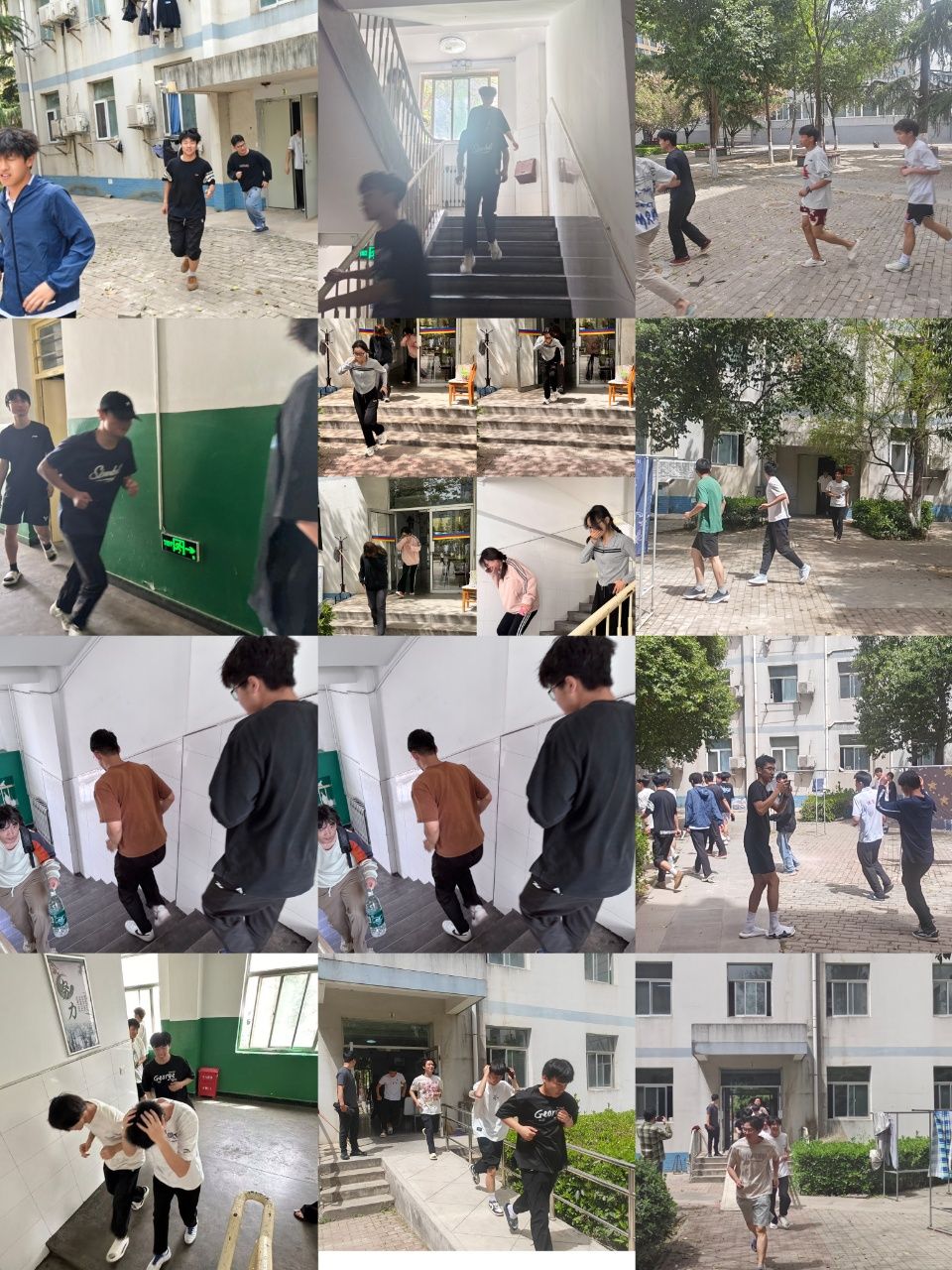 随着一阵急促的警报声在公寓楼内响起,演练正式拉开帷幕。东铭二号和东铭五号公寓的员工们迅速做出反应,在各楼层负责人的有序引导下,用湿毛巾捂住口鼻,低姿弯腰,按照预定的疏散路线,快速且安静地向公寓外的安全区域撤离。整个疏散过程紧张有序,同学们配合默契,仅用时5分钟,全体员工就顺利疏散完毕,到达指定的安全集合点。在集合点,各班班长迅速清点人数,并向现场指挥报告,确保无一人遗漏。