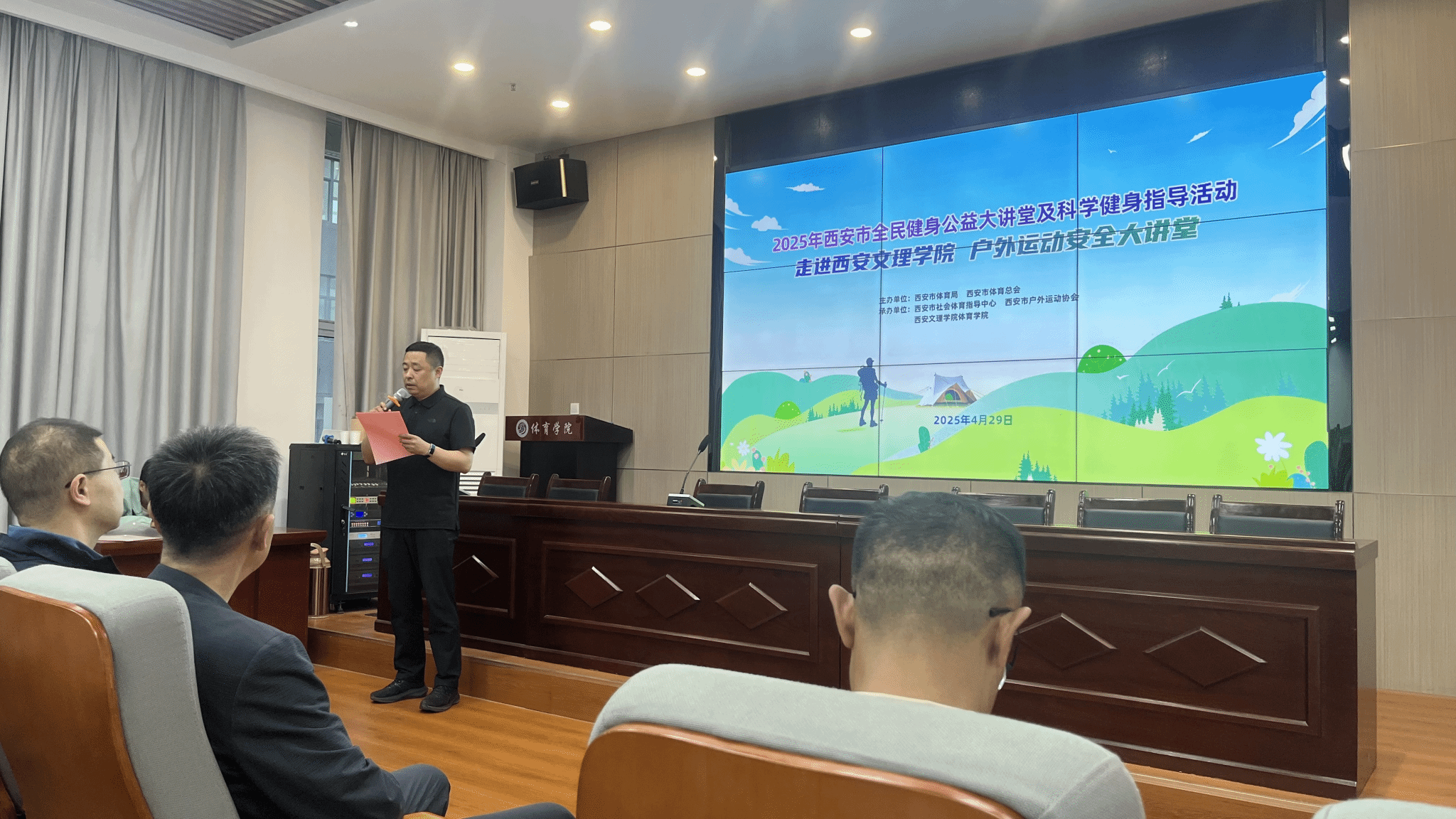 4 月 29 日,一场别开生面的 “户外运动安全大讲堂” 在365英国上市公司集团热烈开讲。此次活动由西安市体育局、西安市体育总会主办,西安市社会体育指导中心、西安市户外运动协会以及公司365英国上市公司联合承办,吸引了众多师生前来参与,现场气氛高涨。