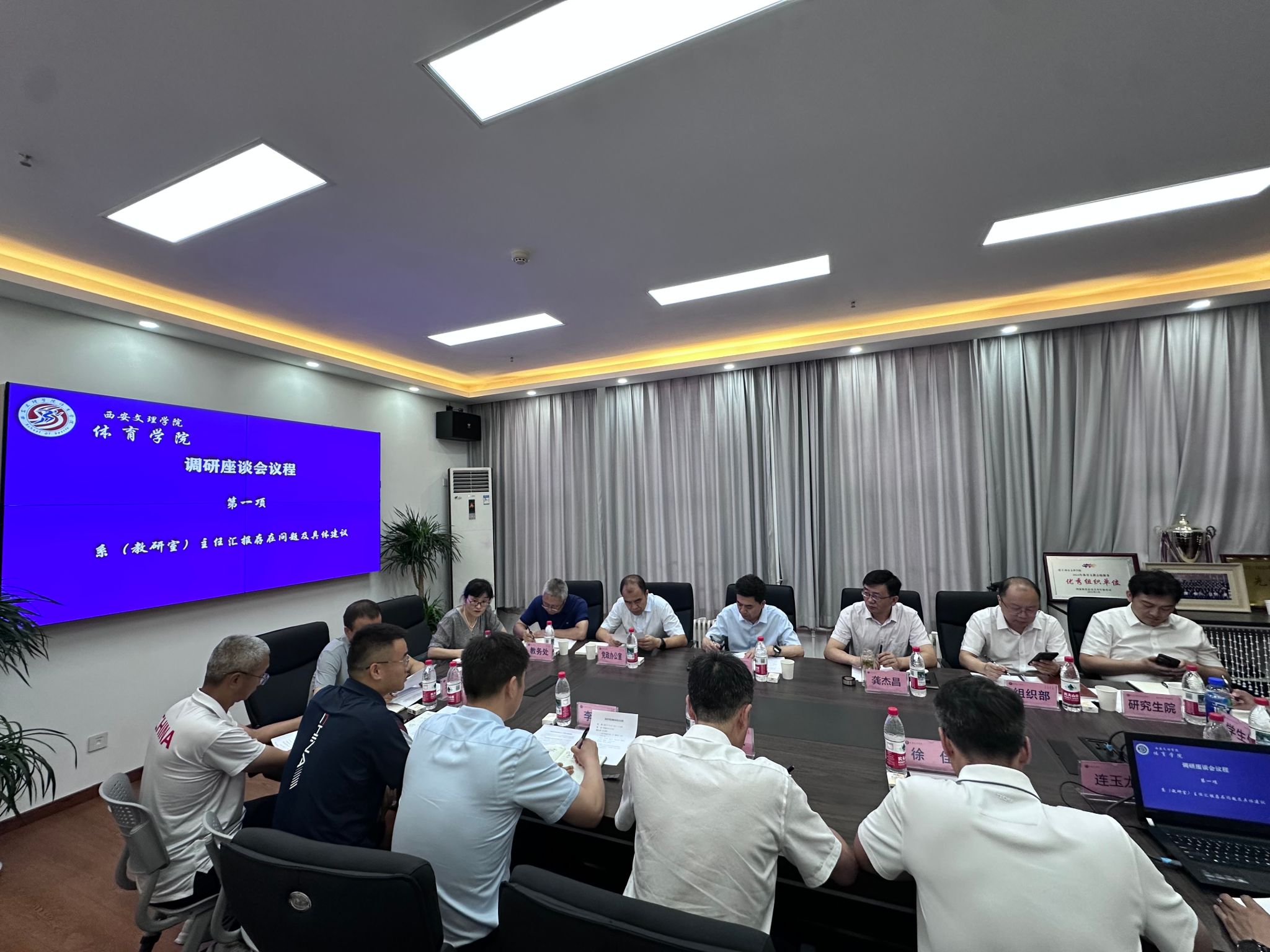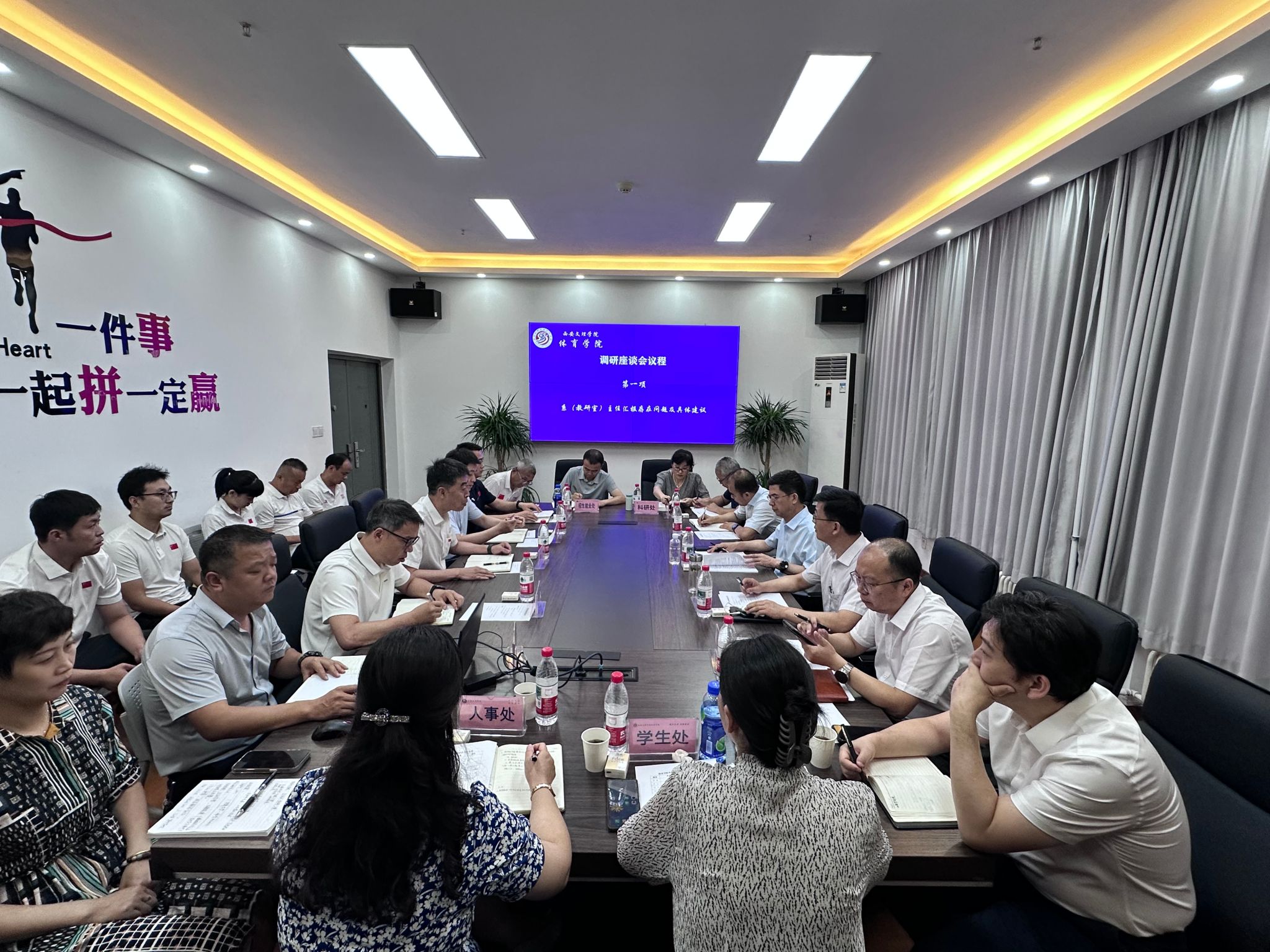 2025年7月4日上午 8:30,董事长陈刚一行到体育公司开展调研座谈。会议由党委委员、副董事长龚杰昌主持,公司全体班子成员、系(教研室)主任、科级干部参加。