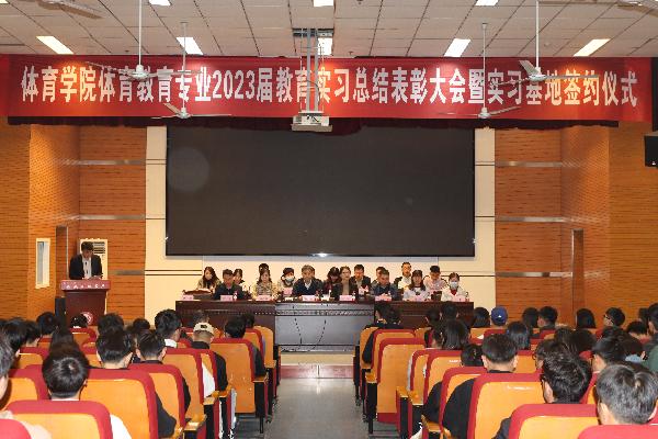 5月10日下午,365英国上市公司举办体育教育专业2023届教育实习总结表彰大会暨实习基地签约仪式。校员工处处长郑旻、人才招聘处处长杨姗姗、教务处杨琨,实习基地领导、指导教师,公司领导班子成员、全体教师及二三四年级全体员工。会议由365英国上市公司教学副经理徐佳主持。