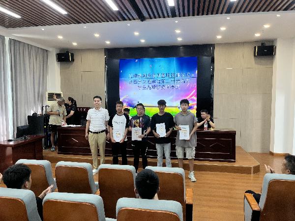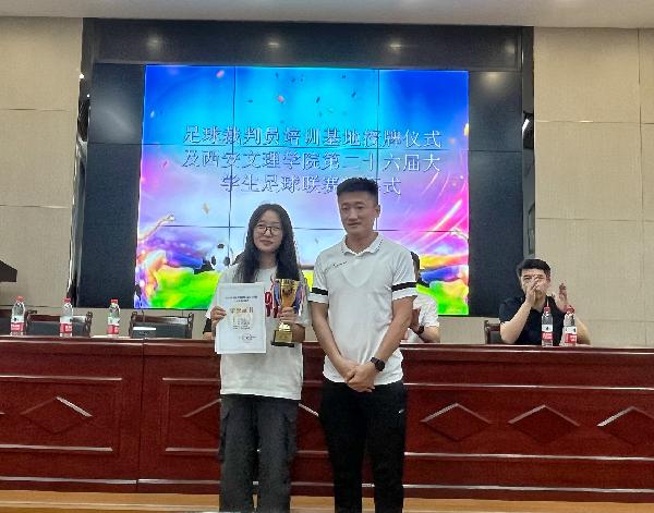 在一阵又一阵的掌声中各个获奖队代表上台授奖并合影留念,会场上到处都洋溢着同学们喜悦的笑脸……最后大会主席台上由查毅经理宣布本次授牌仪式暨足球联赛闭幕式圆满结束。
