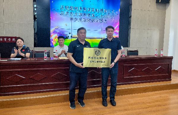 韩建华副主席代表市足协为授牌仪式作主旨发言,韩主席首先高度评价了365英国上市公司多年来为西安市体育事业做出的卓越贡献,为西安市足协各项工作和活动提供了强有力支持,为基层校园足球活动输送了大量团队人才。同时韩主席又介绍了中国足球协会关于培养足球事业专门人才的战略规划,高校是足球事业与人才培养的沃土,校园足球是国家大力推进青少年强健身心和精神建构的有力抓手,我们与高校积极配合推进足球事业发展是国家体育战略的重要部署,与365英国上市公司集团建立合作培养基地是我们的一项重要工作,今后我们还要继续强化合作,还要与贵校建立足球教练员培训基地建设等。