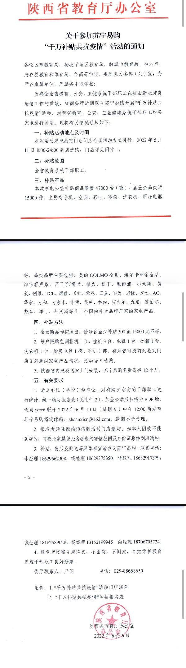 关于参加苏宁易购“千万补贴共抗疫情”活动的通知