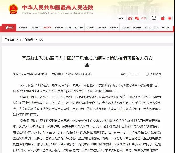 为了保证医务人员的合法权益和安全健康,最高法、最高检、国家卫健委和公安部联合发文,严打疫情防控期间涉医违法犯罪行为!